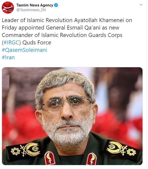 Σύμφωνα με το πρακτορείο ειδήσεων Tasnim, το πρόγραμμα της ελίτ δύναμης θα συνεχιστεί ακριβώς όπως ήταν υπό τη διοίκηση του Σουλεϊμανί.