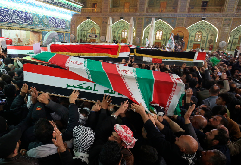 Να σημειωθεί ότι χθες πραγματοποιήθηκαν στην Βαγδάτη οι κηδείες του Κασέμ Σουλεϊμανί και του Αμπου Μάχντι αλ Μουχάντις, του κύριου υπολοχαγού του στο Ιράκ, όπου πλήθος κόσμου είχε συγκεντρωθεί κρατώντας ιρανικές σημαίες και φορώντας μαύρα ρούχα, ενώ φώναζαν «θάνατος στην Αμερική».