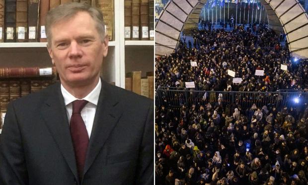 Σύμφωνα με τη βρετανική εφημερίδα Daily Mail, ο Βρετανός πρεσβευτής συνελήφθη επειδή "υποκίνησε" τους διαδηλωτές και αφέθηκε ελεύθερος έπειτα από περίπου μία ώρα.
