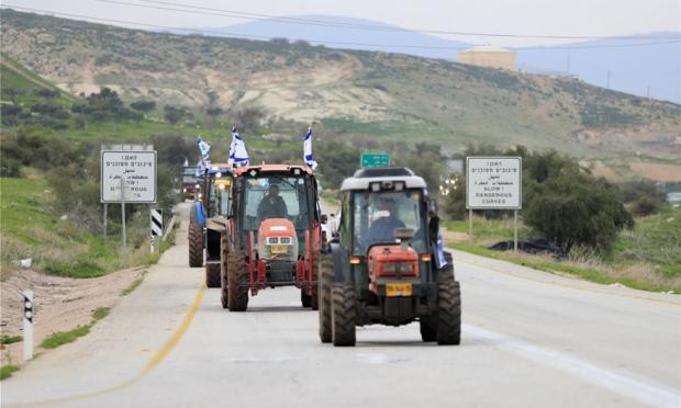 Με υψωμένες ισραηλινές σημαίες και πανό που έγραφαν «Σφραγίζουμε την ιστορία, επιβάλλουμε την κυριαρχία», τα τρακτέρ ακολουθούνταν από αυτοκίνητα που κόρναραν συνεχώς σε ένδειξη συμπαράστασης.