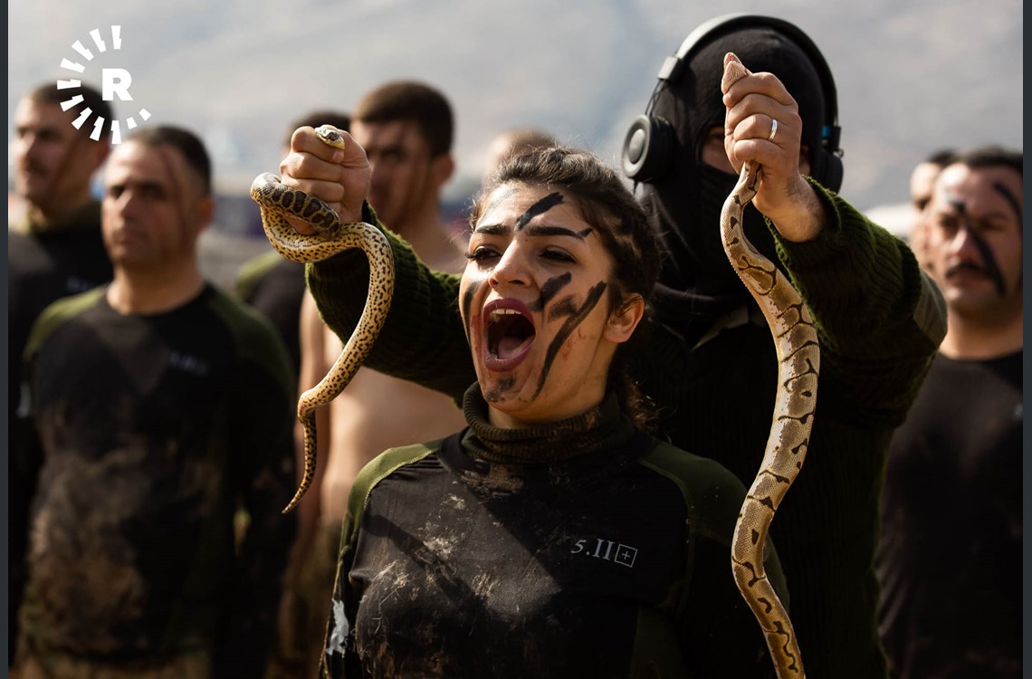 Όπως φαίνεται στις φωτογραφίες που ακολουθούν οι γυναίκες από το Κουρδιστάν κλήθηκαν να δαγκώσουν νεκρά ζώα, από κουνέλια μέχρι... φίδια!