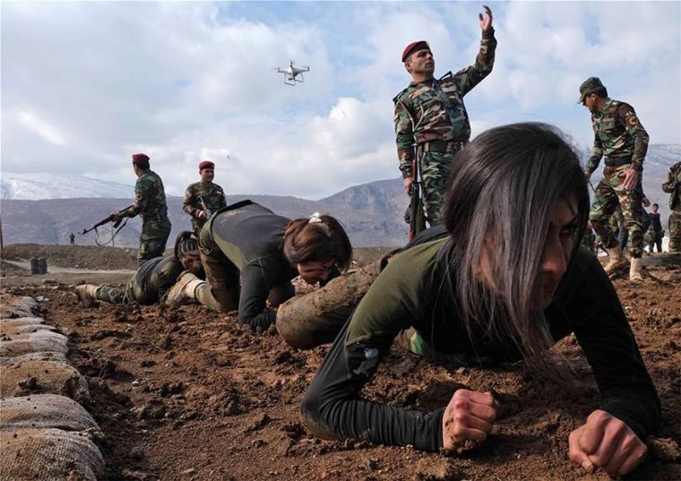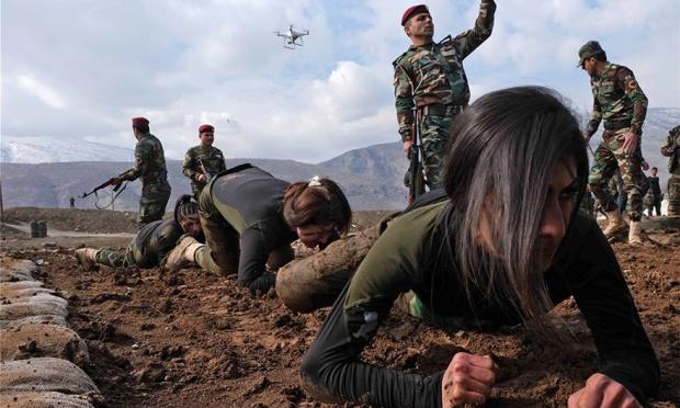 Στον πρόσφατο αγώνα τους κατά του Ισλαμικού Κράτους συστρατεύτηκαν και γυναίκες με κουρδική καταγωγή που ζούσαν μέχρι τότε στη Δύση. Αν και δεν είχαν ξαναπιάσει ποτέ μέχρι τότε όπλο στα χέρια τους, βάλθηκαν να εμποδίσουν τη διεύρυνση του λεγόμενου Χαλιφάτου και των εγκλημάτων του κατά της ανθρωπότητας και ειδικά κατά της θρησκευτικής κοινότητας των Γιαζίντι. Αυτές οι γυναίκες ήταν που εμπόδισαν τους τζιχαντιστές να καταλάβουν το Κομπάνι. Μετά από ηρωικές μάχες κατάφεραν να απωθήσουν το στρατό του Ισλαμικού Κράτους, το οποίο πριν μερικά χρόνια είχε καταλάβει τη Μοσούλη και επεδίωξε να καταλύσει το αυτόνομο κουρδικό κρατίδιο στο βόρειο Ιράκ. Στις περιοχές των μαχών που δόθηκαν υψώνονται σημαίες του Κουρδιστάν και μνημεία με χαραγμένα τα ονόματα των πεσόντων.