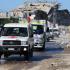 Κατά μήκος του παράκτιου δρόμου κοντά στη Νουσεϊράτ εξαντλημένες οικογένειες περπατούν αργά, μεταφέροντας τα υπάρχοντάς τους στο κεφάλι ή τους ώμους. Άλλοι είναι στριμωγμένοι ανάμεσα σε στρώματα σε καρότσες μικρών φορτηγών.