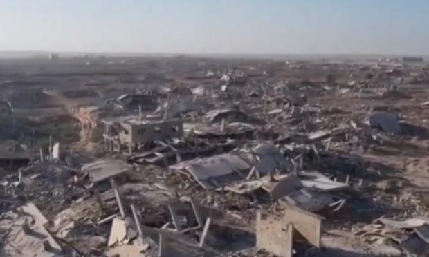 Τα βίντεο δείχνουν ολόκληρες συνοικίες να έχουν μετατραπεί σε ερείπια, με κατεστραμμένα κτίρια, καμένα οχήματα και δρόμους γεμάτους συντρίμμια.