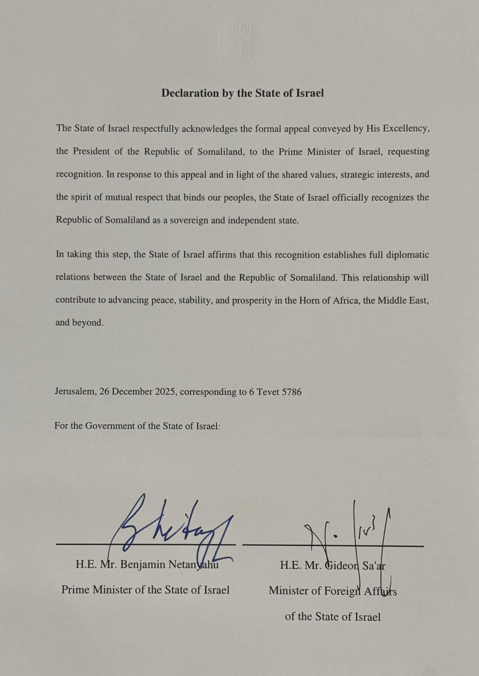 Η Σομαλιλάνδη είναι μια περιοχή στο βορειοδυτικό τμήμα της Σομαλίας που λειτουργεί de facto ως ανεξάρτητο κράτος από το 1991, έχοντας δικούς της θεσμούς, κυβέρνηση και οικονομικές δομές. Παρά την αυτονομία που έχει στην πράξη, μέχρι πρόσφατα δεν είχε λάβει επίσημη διεθνή αναγνώριση. Η απόφαση του Ισραήλ να αναγνωρίσει τη Σομαλιλάνδη ως κυρίαρχη οντότητα αποτελεί ιστορική πρωτιά για το Τελ Αβίβ και πιθανώς ανοίγει τον δρόμο για μια νέα γενιά διπλωματικών σχέσεων στην περιοχή.