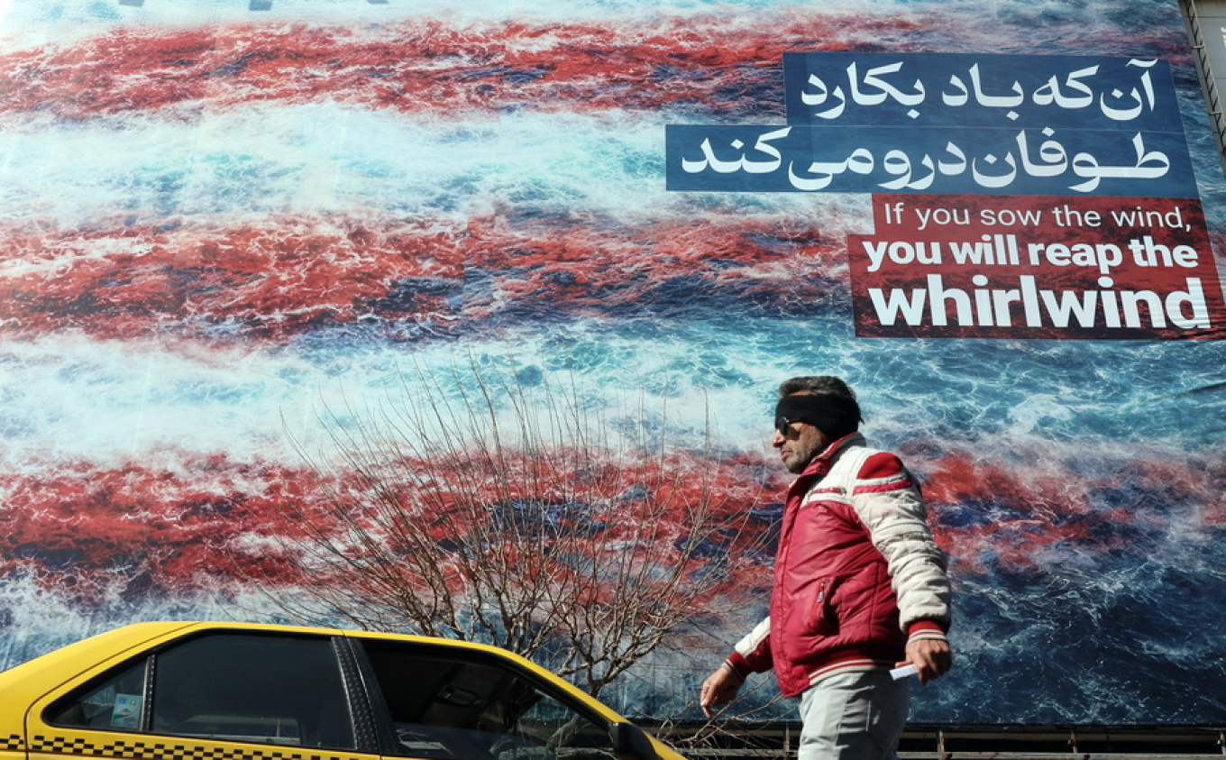 Φωτογραφίες που κυκλοφόρησαν από τους δρόμους της Τεχεράνης το πρωί της Τετάρτης αποκαλύπτουν τεράστιες, προπαγανδιστικές αφίσες με τη σημαία των ΗΠΑ και αυστηρές προειδοποιήσεις κατά των Αμερικανών, με κεντρικό σύνθημα: «Αν σπείρεις τον άνεμο, θα θερίσεις θύελλες». Γύρω από αυτές τις αφίσες δεσπόζουν μεγάλες τοιχογραφίες του ανώτατου ηγέτη του Ιράν, Αγιατολάχ Αλί Χαμενεΐ, και του ιδρυτή της Ισλαμικής Δημοκρατίας, Αγιατολάχ Ρουχολάχ Χομεϊνί, διατηρώντας το αντιαμερικανικό αίσθημα στο κόκκινο, λίγο πριν το κρίσιμο ραντεβού της Γενεύης.