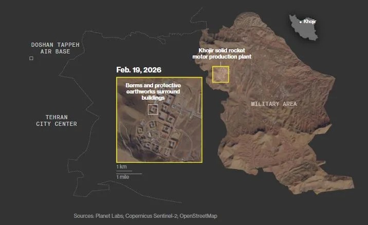 Η απειλή δεν περιορίζεται στο ουράνιο. Οι δορυφόροι εστιάζουν πλέον στο συγκρότημα Κοχίρ και στο Παρχίν, τις αχανείς βιομηχανικές ζώνες παραγωγής βαλλιστικών πυραύλων.