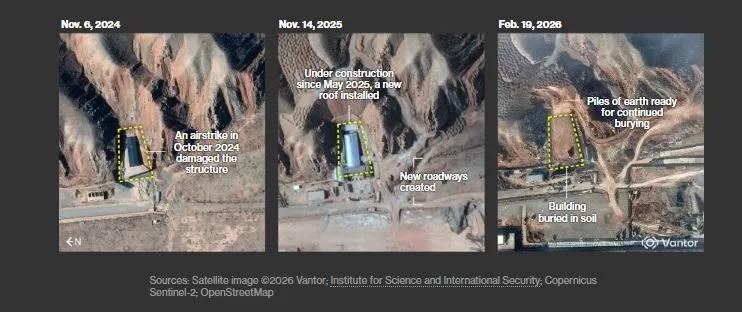 Στο Ισφαχάν, το νευραλγικό κέντρο πυρηνικών ερευνών, οι δορυφόροι κατέγραψαν μια κίνηση-ματ: οι είσοδοι των τούνελ έχουν σφραγιστεί ερμητικά με τεράστιους όγκους χώματος και βράχων.