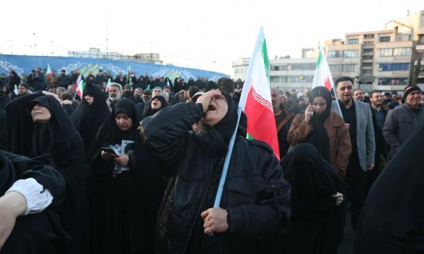 Οι περισσότεροι από τους συγκεντρωμένους ήταν ντυμένοι στα μαύρα, αρκετοί εμφανώς συγκινημένοι, ενώ κρατούσαν πορτρέτα του αγιατολάχ, ο οποίος κατείχε από το 1989 το ανώτατο αξίωμα στη χώρα. Ανάμεσα σε σημαίες της Ισλαμικής Δημοκρατίας, ακούγονταν συνθήματα όπως «Θάνατος στην Αμερική!» και «Θάνατος στο Ισραήλ!».