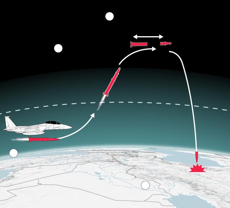 Το πρωί του Σαββάτου, η δράση μεταφέρθηκε στους αιθέρες. Στις 09:40 π.μ., ενώ η ιρανική ηγεσία βρισκόταν σε συνάντηση, εκτοξεύτηκε ο πύραυλος «Blue Sparrow». Πρόκειται για ένα τεχνολογικό θαύμα που προκαλεί ίλιγγο: ο πύραυλος εκτοξεύεται από μαχητικά F-15, εξέρχεται από την ατμόσφαιρα της Γης στο διάστημα και στη συνέχεια επανεισέρχεται με αστρονομική ταχύτητα, χτυπώντας τον στόχο με χειρουργική ακρίβεια.