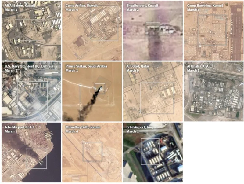 Η ιρανική αντεπίθεση έχει προκαλέσει σημαντικά πλήγματα στις αμερικανικές δυνάμεις της περιοχής. Σύμφωνα με ρεπορτάζ των New York Times, το οποίο βασίζεται σε δορυφορικές εικόνες και επιβεβαιωμένα βίντεο, τουλάχιστον 17 αμερικανικές στρατιωτικές και διπλωματικές εγκαταστάσεις στη Μέση Ανατολή έχουν πληγεί από ιρανικά drones και πυραύλους.