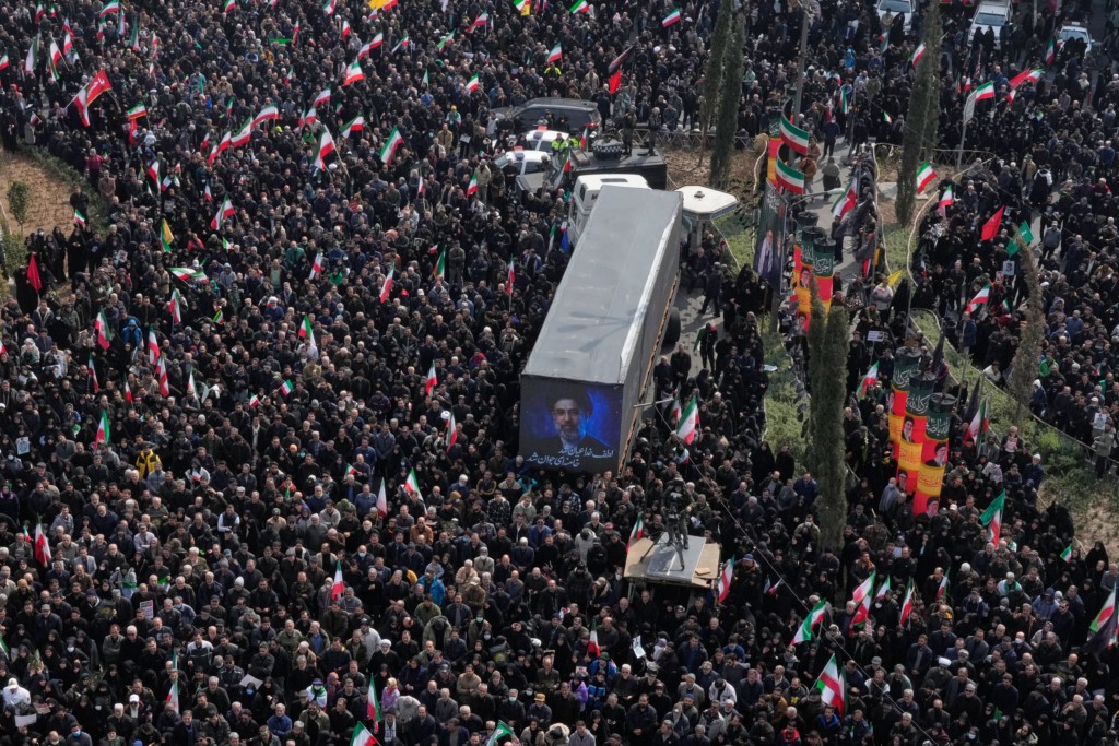 Πλήθος κόσμου, κρατώντας φωτογραφίες και λουλούδια απέτινε φόρο τιμής στα θύματα του πολέμου, εκφράζοντας παράλληλα τη στήριξή του στο καθεστώς και στον νέο ανώτατο ηγέτη του Ιράν, Μοτζτάμπα Χαμενεΐ.