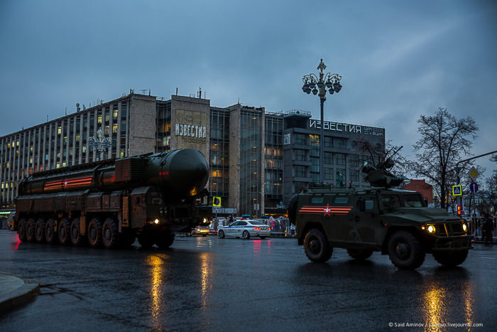 Επίσης το ρωσικό γενικό επιτελείο προετοιμάζεται πυρετωδώς για την παρέλαση στην Κόκκινη Πλατεία και πραγματοποιεί συνεχείς πρόβες. Χθες το βράδυ πραγματοποιήθηκε μια γενική δοκιμαστική από όλους τους συμμετέχοντες στον κεντρικό δρόμο της Μόσχας.