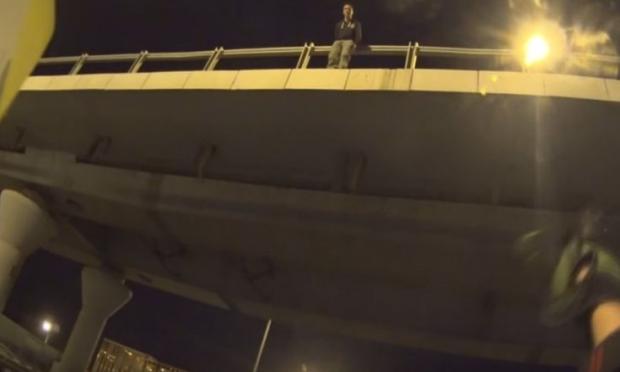 Από την κάμερα καταγράφηκαν οι αγωνιώδεις προσπάθειες του μοτοσικλετιστή να μεταπείσει τον άνδρα κάτι που τελικά καταφέρνει, ενώ για να βεβαιωθεί πως ο νεαρός θα είναι ασφαλής, ανέβηκε και ο ίδιος στη γέφυρα.