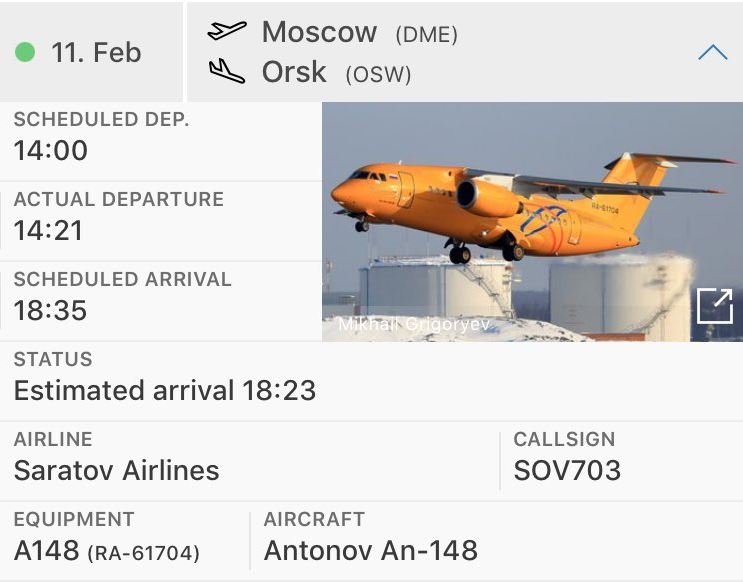 Το αεροσκάφος είχε ως προορισμό το Ορσκ, πόλη που βρίσκεται κοντά στα σύνορα της Ρωσίας με το Καζακστάν.