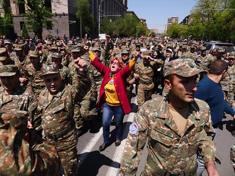 Σημείο καμπής που οδήγησε στην παραίτηση τουΑρμένιου προέδρου ήταν η εμφάνιση στρατιωτικού τάγματος με την πλευρά των διαδηλωτών κάτι που σήμαινε την μη εμπιστοσύνη των στρατιωτικών αρχών προς την Κυβέρνηση της χώρας.