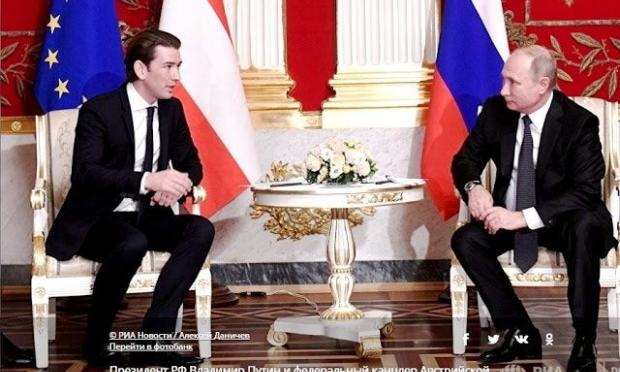 Ο Ρώσος Πρόεδρος Βλαντιμίρ Πούτιν και ο Ομοσπονδιακός Καγκελάριος της Δημοκρατίας της Αυστρίας Sebastian Kurz κατά τη διάρκεια μιας συνάντησης. 3 Οκτωβρίου 2018