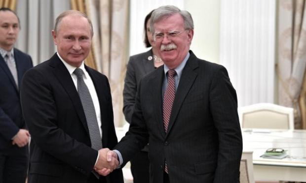 Με ειρωνικό τρόπο, ο Ρώσος πρόεδρος, Βλαντιμίρ Πούτιν, σχολίασε την αμερικανική επιθετικότητα έχοντας απέναντί του τον Αμερικανό σύμβουλο Εθνικής Ασφάλειας, Τζον Μπόλτον.