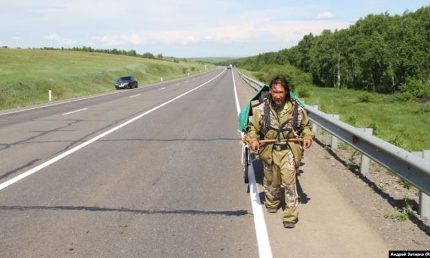 O Αλεξάντρ Γκαμπίσεφ, που είχε ξεκινήσει την πορεία του τον Μάρτιο και προέβλεπε να φθάσει το 2021 στη Μόσχα, συνελήφθη την περασμένη νύχτα στη ρωσική δημοκρατία της Μπουριάτια, στην ανατολική Σιβηρία, ενώ κατασκήνωνε με μαθητές του σε έναν αυτοκινητόδρομο κοντά στη λίμνη Βαϊκάλη.