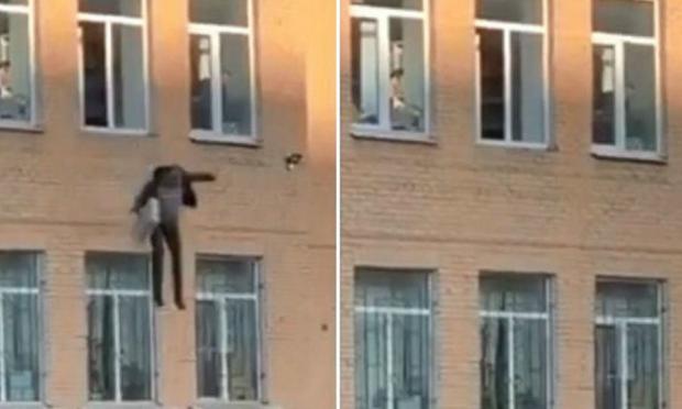 Στο ανοιχτό παράθυρο φαίνεται και μια άλλη φιγούρα να βγάζει το πόδι και να ετοιμάζεται να πηδήξει κι αυτό. Εκεί το βιντεοσκοπημένο κλιπ τελειώνει και ξεκινά τη viral πορεία του στο Διαδίκτυο.