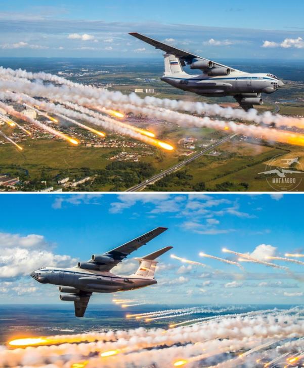 Δείτε βίντεο από εντυπωσιακές ασκήσεις μεταφορικών αεροσκαφών Il-76MD της ρωσικής Αεροπορίας καθώς εξαπολύουν θερμοβολίδες για την προστασία τους από επίγεια αντιαεροπορικά συστήματα MANPADS.