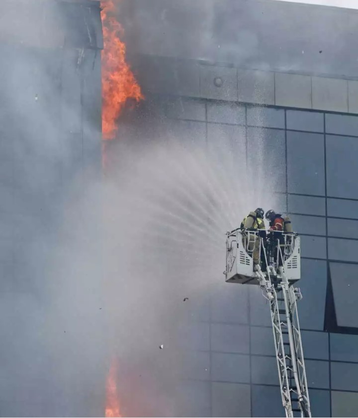 Η φωτιά ξεκίνησε, σύμφωνα με το ΑΜΠΕ, από τον πρώτο όροφο του κτιρίου γραφείων και επεκτάθηκε γρήγορα λόγω των εύφλεκτων μονωτικών υλικών σε άλλους τέσσερις ορόφους.