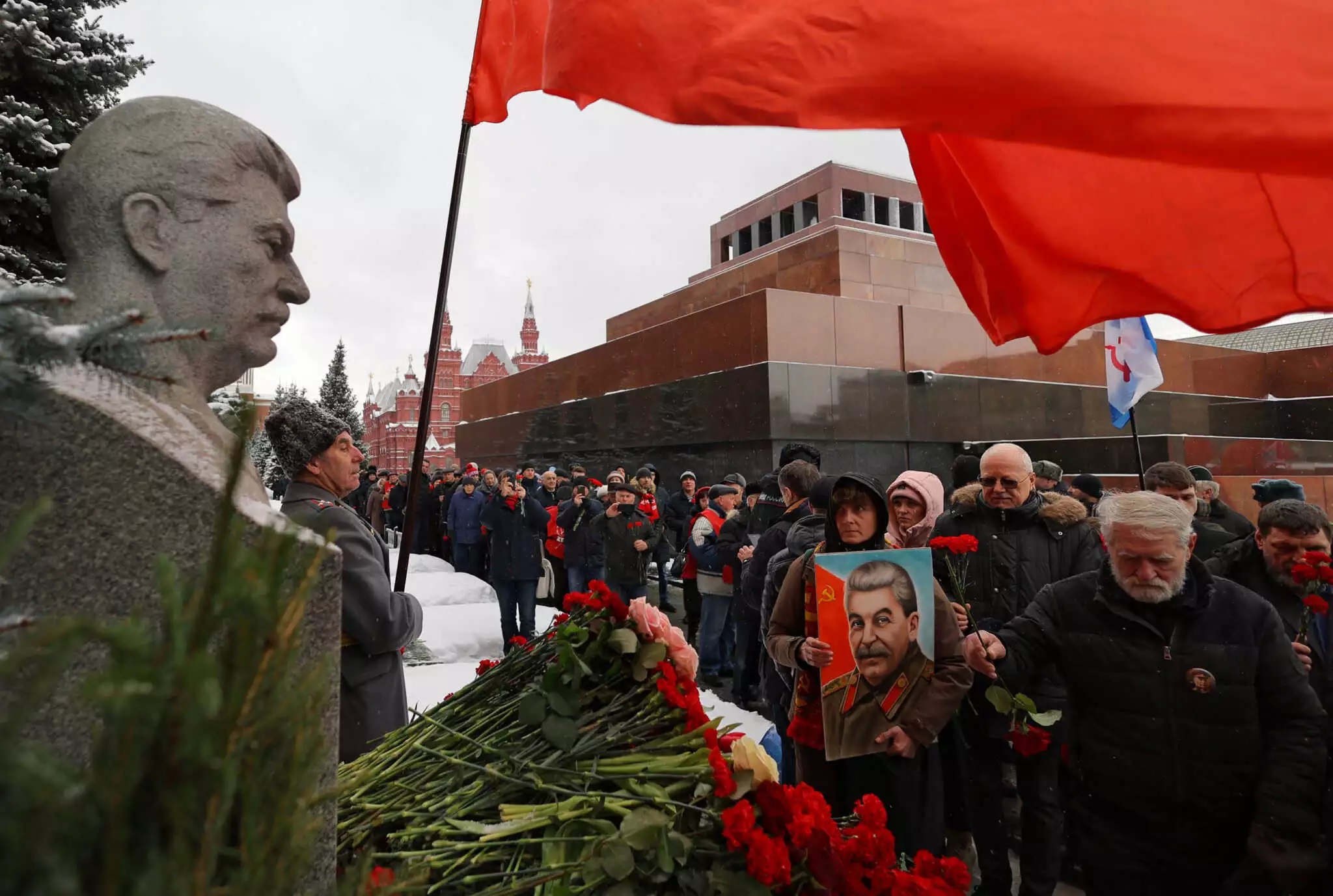Ορισμένοι κρατούσαν σοβιετικές σημαίες, άλλοι πορτρέτα του αδυσώπητου ηγέτη που γεννήθηκε στη Γεωργία το 1878. «Χωρίς την επιστροφή του Στάλιν στη Ρωσία εμείς, οι Ρώσοι και άλλοι αυτόχθονες λαοί της Ρωσίας δεν θα επιβιώσουμε», διαβεβαίωσε ο Βλαντίμιρ Κβάτσκοφ, 74 ετών, απόστρατος συνταγματάρχης της υπηρεσίας στρατιωτικών πληροφοριών (GRU). «Θα χαιρόμασταν αν επέστρεφε ένας τέτοιος ηγέτης», συμφώνησε και ο Γιούρι, ένας άλλος συνταξιούχος που πήγε στην Κόκκινη Πλατεία για να τιμήσει τον Ιωσήφ Βησαριόνοβιτς Τζουγκασβίλι, τον «πατερούλη», όπως τον αποκαλούσε η σοβιετική προπαγάνδα.