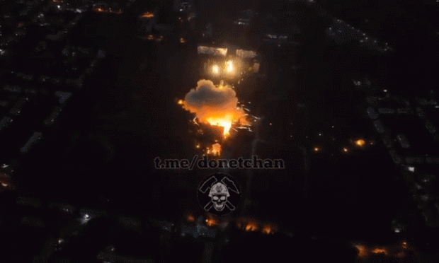 Πλάνα από drone κατά τη διάρκεια της ημέρας δείχνουν μεγάλες ποσότητες πυρομαχικών αποθηκευμένων στην αυλή ενός κτιριακού συγκροτήματος στη Μακίιβκα. Το χτύπημα των Ουκρανών έγινε τη νύχτα και το drone κατέγραψε τη στιγμή της έκρηξης, η οποία προκάλεσε αλυσιδωτή αντίδραση που κράτησε δεκάδες δευτερόλεπτα, με τα ρωσικά πυρομαχικά στην αποθήκη να καταστρέφονται ολοσχερώς. Η Ρωσία κατηγόρησε την ουκρανική επίθεση ότι είχε στόχο ένα νοσοκομείο στη Μακίιβκα, αλλά οι δορυφορικές εικόνες δείχνουν ότι οι Ρώσοι έχουν εγκαταστήσει την κρύπτη των πυρομαχικών τους σε ένα κτίριο στην πόλη, περίπου 300 μέτρα από το νοσοκομείο.