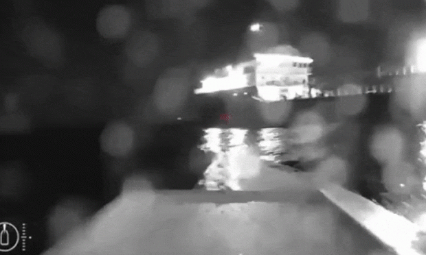 Το ουκρανικό υπουργείο Άμυνας έδωσε στη δημοσιότητα εικόνες από τη στιγμή της πρωινής επίθεσης στα στενά του Κερτς, στο ρωσικό πετρελαιοφόρο «SIG». Τα πλάνα τραβήχτηκαν από το θαλάσσιο drone που χρησιμοποιήθηκε για να χτυπήσει το δεξαμενόπλοιο.