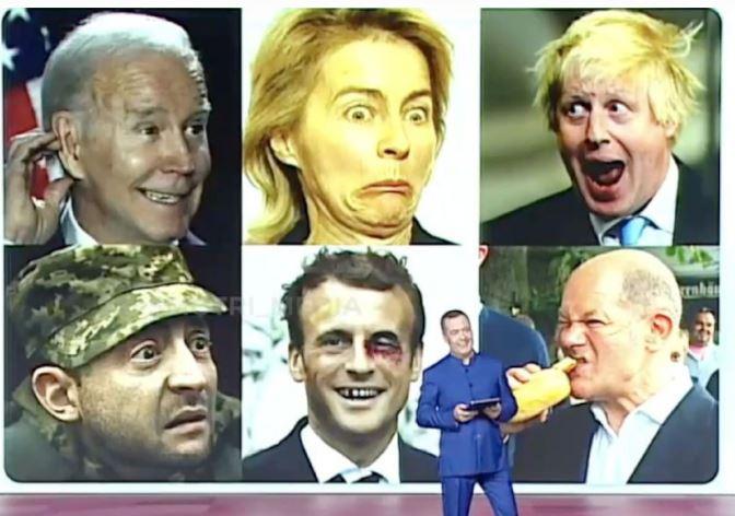 Ο ίδιος δήλωσε επίσης, όπως μεταδίδει ο ΣΚΑΙ, ότι η Μόσχα «θα δείξει αυτοσυγκράτηση» σχετικά με την φερόμενη ως υποκλοπή συνομιλίας αξιωματικών των γερμανικών ενόπλων δυνάμεων για ενδεχόμενο πλήγμα κατά της Ρωσίας, αλλά πως δεν θα το ξεχάσει, ενώ έδειξε καρικατούρες των Μπάιντεν, φον ντερ Λάιεν, Μακρόν, Τζόνσον και Ζελένσκι δημιουργημένες με ΑΙ.