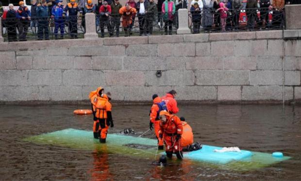 Το δυστύχημα σημειώθηκε γύρω στη 1 το μεσημέρι της Παρασκευής, όταν λεωφορείο με περίπου 20 επιβαίνοντες εξετράπη της πορείας του και έπεσε από γέφυρα στα νερά του ποταμού Μόικα.