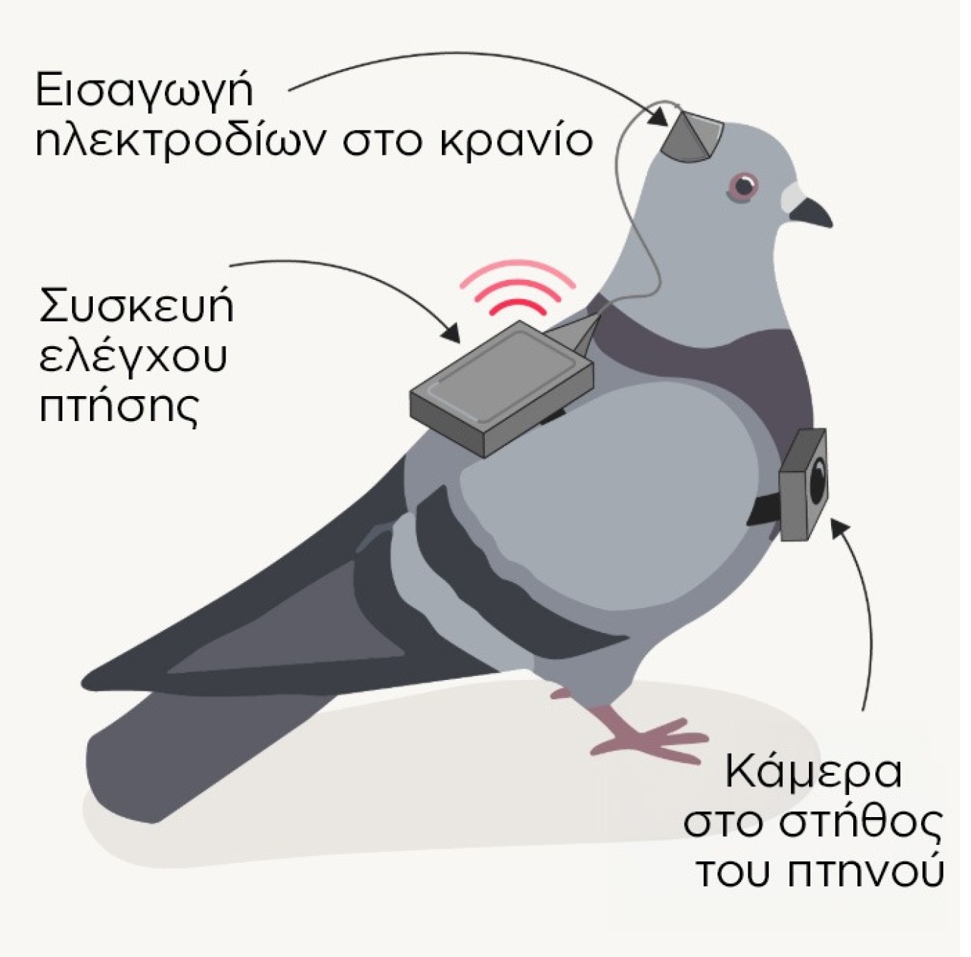 Το αποτέλεσμα; Ένας χειριστής με ένα τηλεχειριστήριο μπορεί να διατάξει το πουλί να στρίψει αριστερά ή δεξιά, στέλνοντας ηλεκτρικά σήματα στον εγκέφαλό του. Στο στήθος τους, μια κάμερα υψηλής ευκρίνειας καταγράφει τα πάντα. Τα περιστέρια αυτά μπορούν να διανύσουν πάνω από 300 μίλια την ημέρα, διεισδύοντας σε μέρη όπου κανένα συμβατικό drone δεν θα μπορούσε να φτάσει χωρίς να εντοπιστεί.