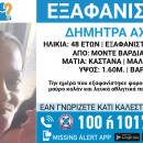 Κοινωνία 11.04.2024 - 07:06 0 Συναγερμός στα Χανιά: Εξαφανίστηκε 48χρονη- Ενδέχεται η ζωή της να βρίσκεται σε κίνδυνοΗ Αχλάτη Δήμητρα έχει ύψος 1,60 μ., είναι 50 κιλά, έχει μαύρα ίσια μαλλιά και καστανά μάτια-Φορούσε κόκκινη ζακέτα,...