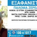 Κοινωνία 09.01.2024 - 15:05 0 Κρήτη: Συναγερμός για την εξαφάνιση 22χρονης στα ΧανιάΗ Ζερελλάρι Παλόμα εξαφανίστηκε το βράδυ της Τρίτης (12/12) από τα Χανιά, ενώ το «Χαμόγελο του Παιδιού» ενημερώθηκε τη...