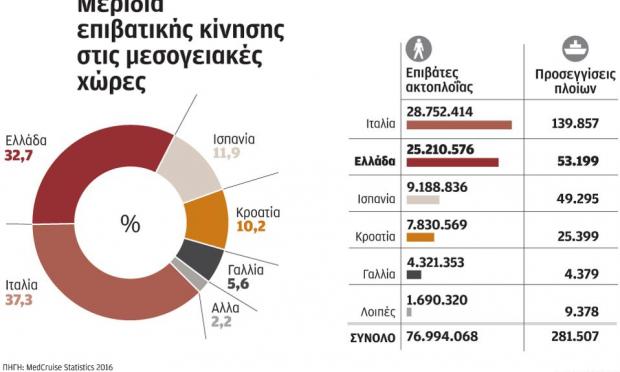 Τα στοιχεία αυτά προκύπτουν από την ετήσια μελέτη της Ενωσης Λιμένων Κρουαζιέρας Μεσογείου (MedCruise ), η οποία παρουσιάστηκε αυτή την εβδομάδα στο Fort Lauderdale του Μαϊάμι στο πλαίσιο της διεθνούς έκθεσης Seatrade Cruise Global 2017 και αφορά την κίνηση το 2015, καθώς δεν μπορούν να συγκεντρωθούν επαρκή στοιχεία για όλους τους λιμένες για το 2016 ακόμη. Ομως με βάση την ετήσια οικονομική έκθεση του ΟΛΠ για το 2016, ο αριθμός των συνολικά διακινηθέντων επιβατών στον Πειραιά σημείωσε μικρή πτώση σε σχέση με την προηγούμενη χρονιά.