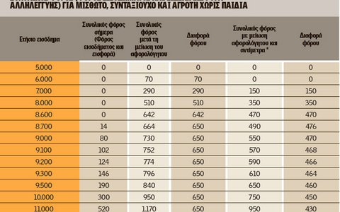 • Σε 1.300 ευρώ από 1.950 ευρώ για φορολογούμενους με ένα παιδί.