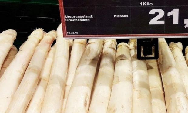 Στο τέλος του περασμένου χρόνου τα ελληνικά σπαράγγια κατέφθασαν στη γερμανική αγορά μαζί με τα σπαράγγια από το Περού. Ήδη τον περασμένο Οκτώβριο πωλούνταν έναντι 3,99 ευρώ τα 350 γραμμάρια.