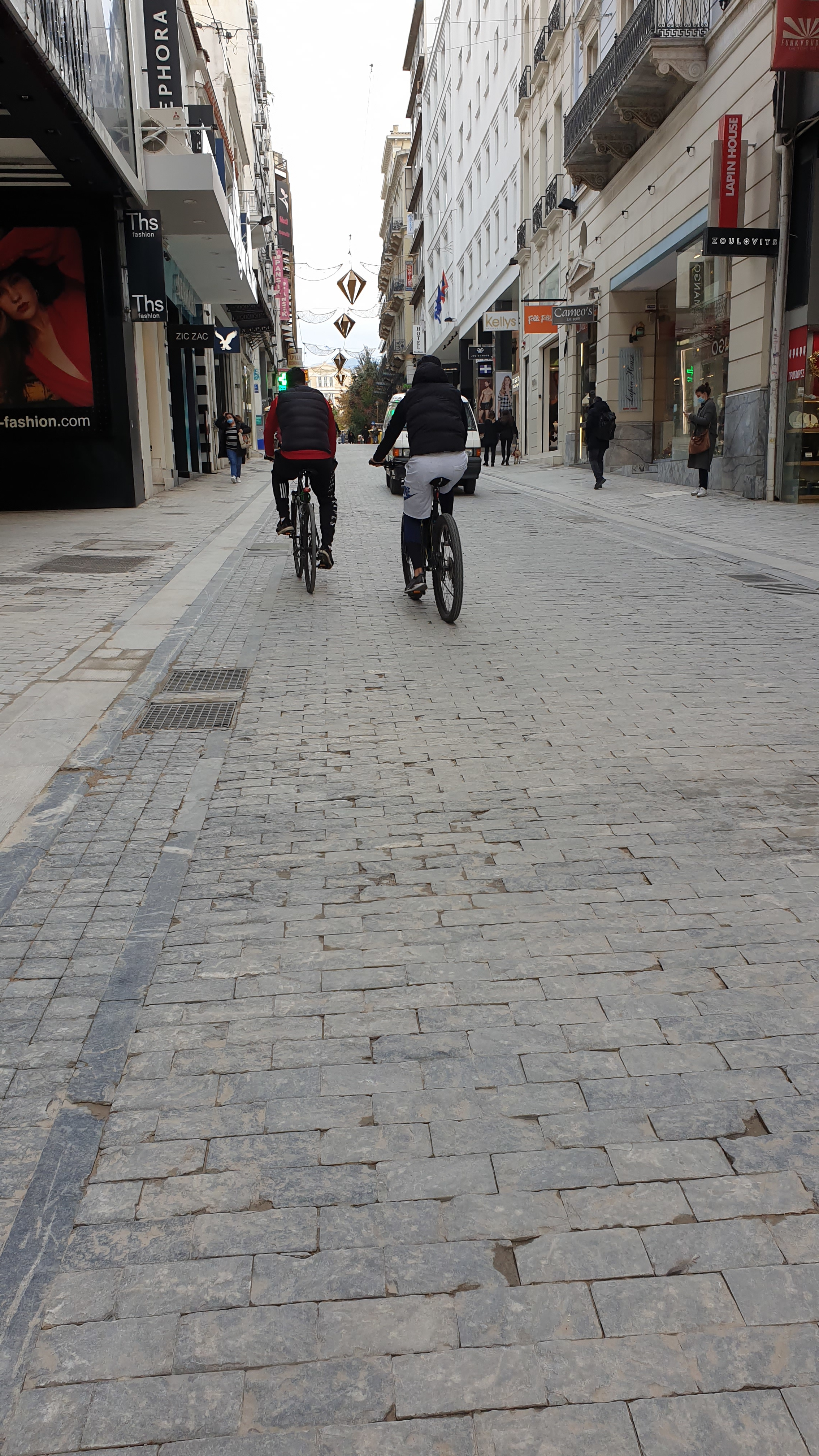 Ο δρόμος που μέχρι πέρυσι τέτοιες μέρες έσφυζε από ζωή είναι σχεδόν άδειος και κάποιοι τον χρησιμοποιούν για να κάνουν ποδήλατο.