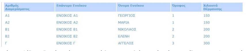 Εάν έχει οριστεί η πολυκατοικία θα εμφανιστεί η εικόνα των διαμερισμάτων στην παρακάτω μορφή: