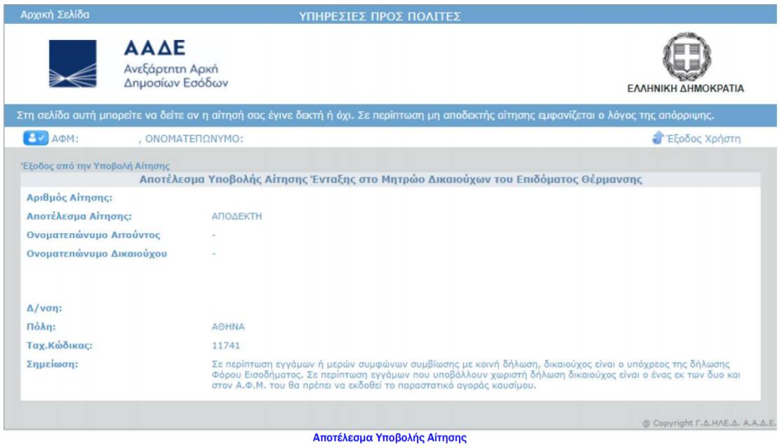 Επιπλέον, δημιουργείται μια εκτυπώσιμη αναφορά, στην οποία αναφέρονται τα στοιχεία της αίτησης. Ο χρήστης, είτε θα δει την ένδειξη ότι η αίτηση έγινε δεκτή, είτε τους λόγους απόρριψης.