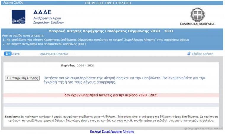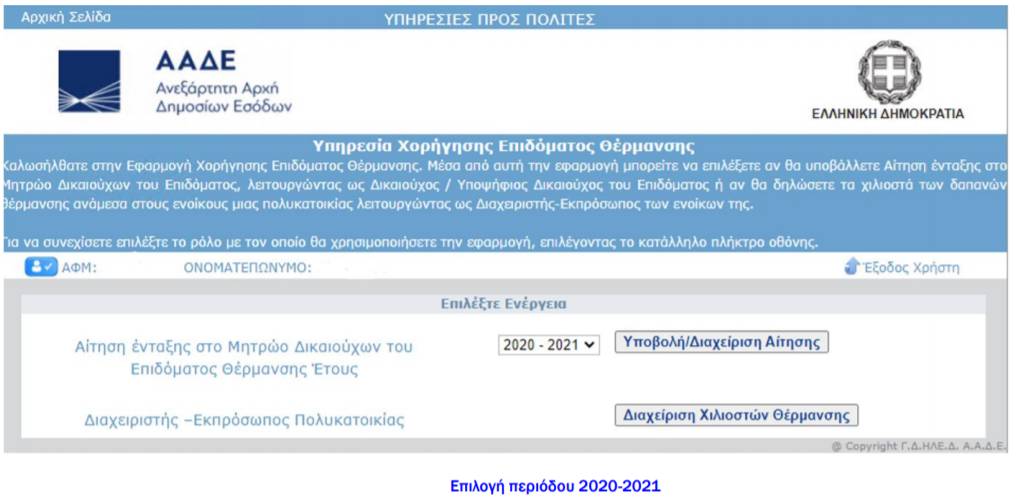 Σε λειτουργία τέθηκε η πλατφόρμα myΘέρμανση της ΑΑΔΕ για την εκδήλωση ενδιαφέροντος εγγαρφής στο Μητρώο Δικαιούχων του Επιδόματος Θέρμανσης.