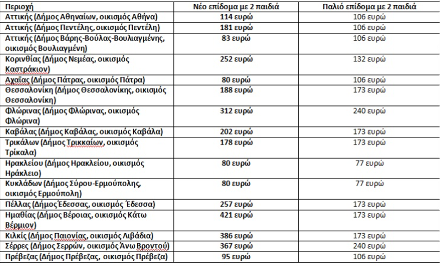 Το ύψος του επιδόματος καθορίζεται στο ποσό των διακοσίων είκοσι (220) ευρώ πολλαπλασιαζόμενο με τον συντελεστή επιδότησης ανά οικισμό, στον οποίο βρίσκεται η κύρια κατοικία, όπως αυτός προσδιορίζεται στο Παράρτημα της σχετικής Υπουργικής Απόφασης που δημοσιεύθηκε ήδη στην Εφημερίδα της Κυβερνήσεως.