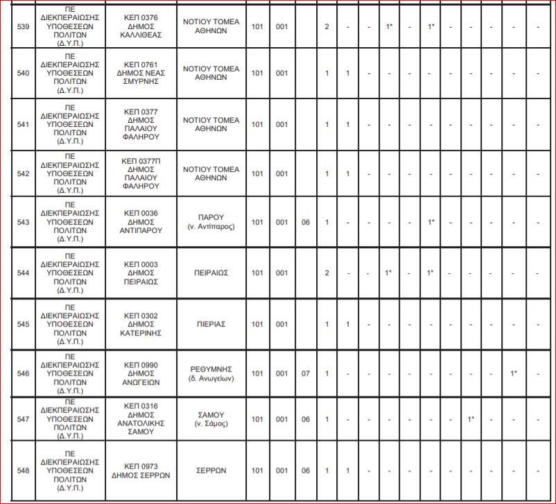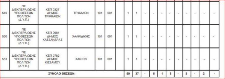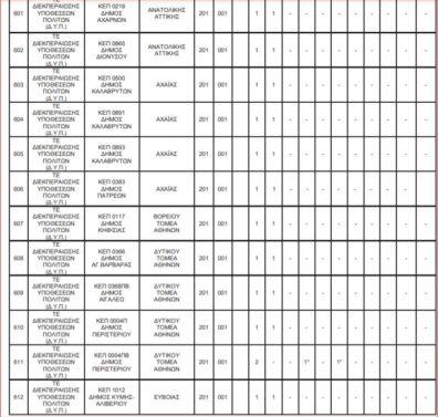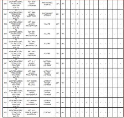 Δείτε αναλυτικά στους πίνακες τις θέσεις: