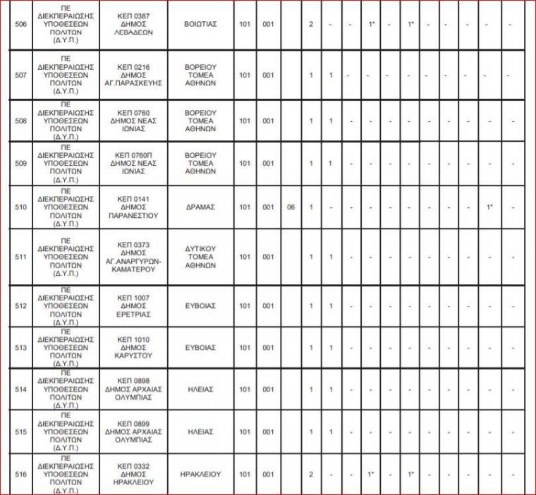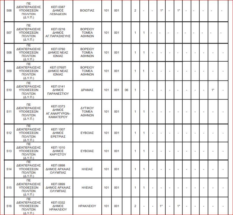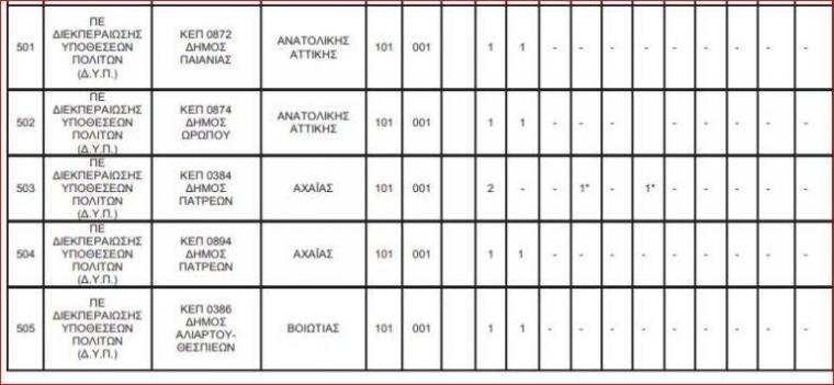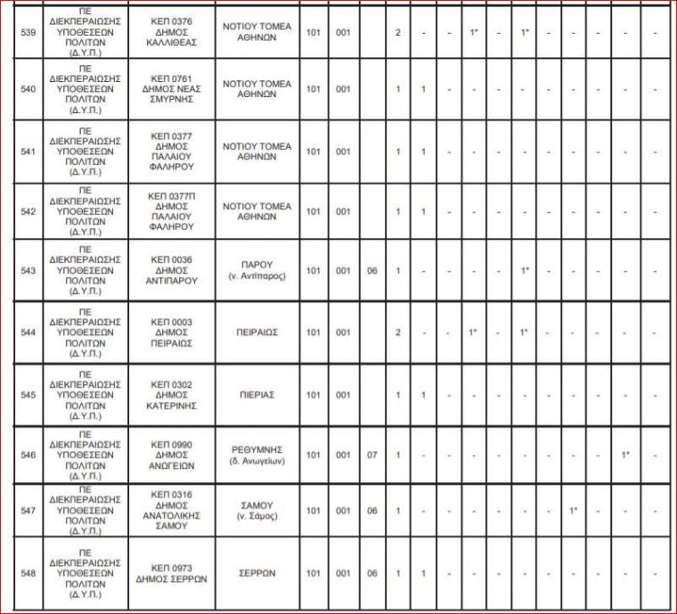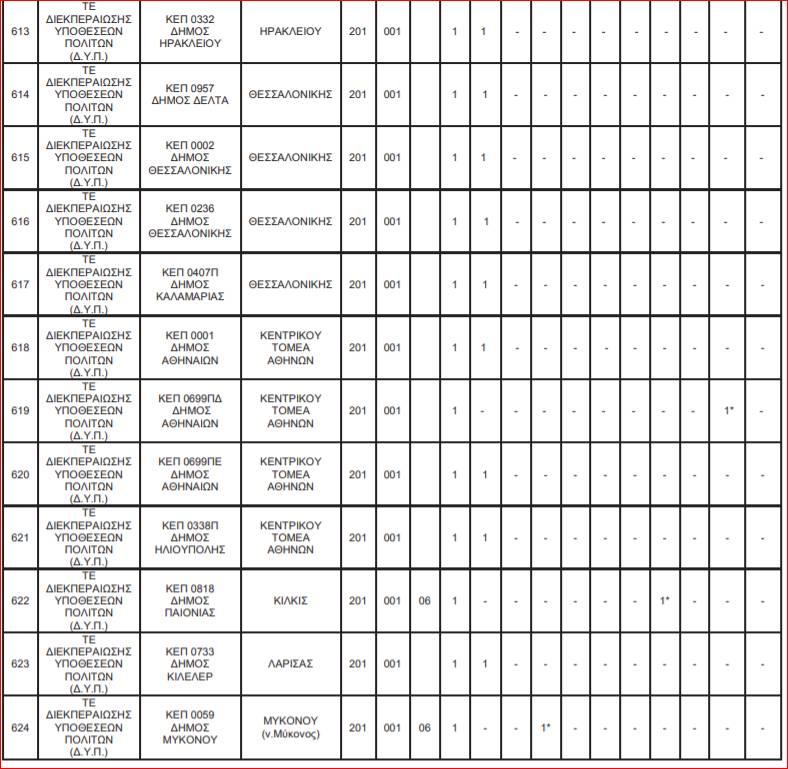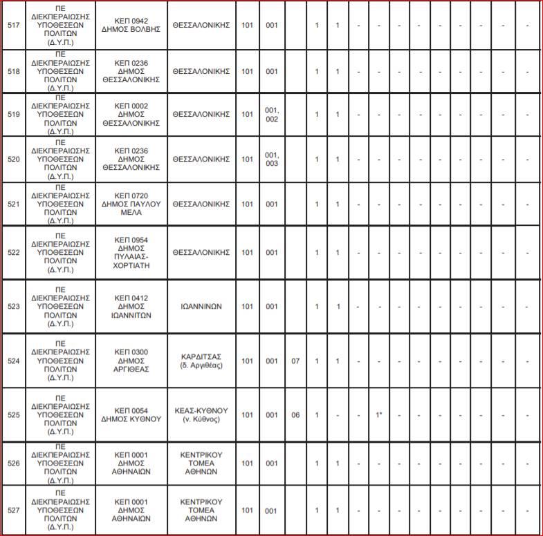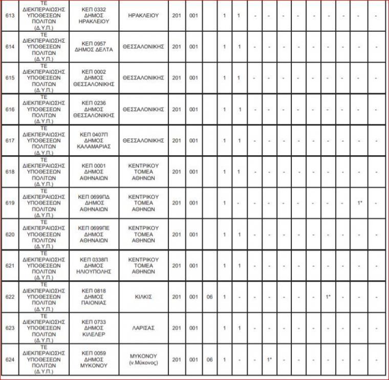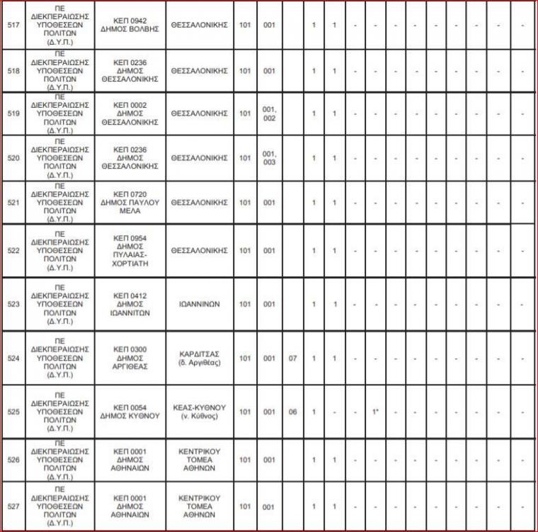 Οι θέσεις εργασίας για τις 144 θέσεις στα ΚΕΠ κατανέμονται ως εξής: