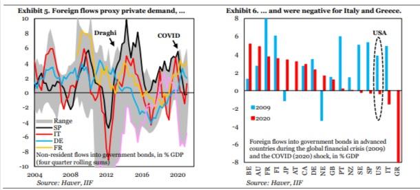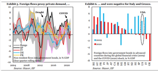 Επίσης το 2020 έσπευσαν να πουλήσουν ιταλικά και ελληνικά ομόλογα, που είναι μία καθαρή ένδειξη ότι οι αγορές, παρά την μαζική παρέμβαση της ΕΚΤ, δεν φαίνεται να συμμερίζονται την άποψη ότι κάθε χώρα έχει πολύ δημοσιονομικό χώρο…