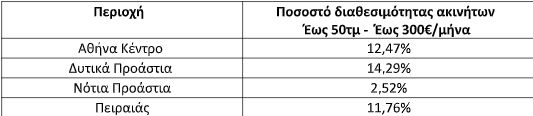 Σύμφωνα με τα μέχρι τώρα δεδομένα που προκύπτουν από τις αναρτημένες αγγελίες ακινήτων σε ιστοσελίδες, η αναζήτηση φοιτητικής κατοικίας άνω του 1ου ορόφου έως 50 τ.μ. με ζητούμενο μίσθωμα έως 300€ στην Αθήνα και ιδιαίτερα στις φοιτητικές περιοχές δεν υπάρχει, αναφέρει ο κ. Μπάκας. Σύμφωνα με τις αναρτημένες αγγελίες σε ιστοσελίδες ακινήτων, στις περιοχές του κέντρου των Αθηνών, οι κατοικίες άνω του 1ου ορόφου έως 50 τ.μ. που διατίθενται με ζητούμενο μίσθωμα έως 300 €, αποτελούν μόλις το 12,47% (κυρίως γκαρσονιέρες 21 τ.μ. - 30 τ.μ.) επί του συνόλου των διαθέσιμων προς μίσθωση κατοικιών άνω του 1 ου ορόφου έως 50 τ.μ. Δηλαδή 1 στις 10 κατοικίες κατάλληλες για φοιτητές διατίθενται με μίσθωμα έως 300€ στην Αθήνα.