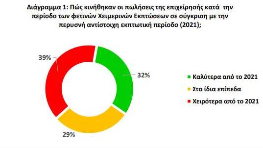 σε σχέση με πέρσι, το 29% στα ίδια επίπεδα, ενώ στο 39% των επιχειρήσεων