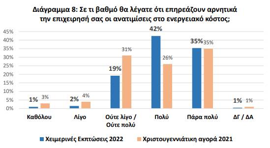 Τούτο σε συνδυασμό, με το ότι οι επιχειρήσεις παρουσιάζουν πολύ χαμηλό βαθμό ικανοποίησης σε σχέση με τα μέτρα στήριξης για τις ανατιμήσεις και τις αυξήσεις στο κόστος ενέργειας, συνηγορεί στην συνεχή πίεση του επιχειρηματικού κόσμου.