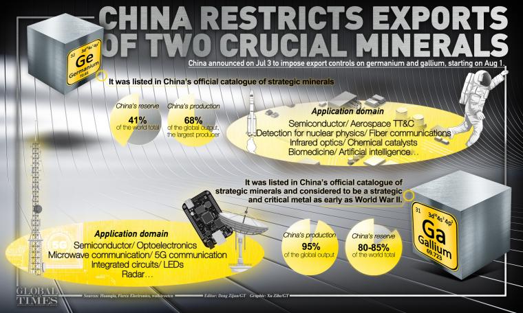 Οι περιορισμοί στις εξαγωγές γαλλίου και γερμανίου από την Κίνα έχουν τεθεί σε ισχύ βάζοντας “φωτιά” στον εμπορικό πόλεμο με τις ΗΠΑ. Η κίνηση της Κίνας έρχεται μετά την απόφαση των ΗΠΑ, Ιαπωνίας και Ολλανδίας, να περιορίσουν τις εξαγωγές τεχνολογιών κατασκευής chip στην Κίνα. Η απάντηση της Κίνας λοιπόν έχει επιπτώσεις για ολόκληρο τον κόσμο, καθώς τα δύο αυτά μέταλλα χρησιμοποιούνται ευρέως στην κατασκευή ημιαγωγών, ενώ έχουν και στρατιωτικές εφαρμογές.