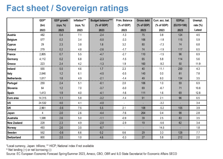Η αμερικάνικη τράπεζα εκτιμά ότι το ελληνικό ΑΕΠ θα διαμορφωθεί φέτος στα 223 δισ. ευρώ και η ανάπτυξη στην Ελλάδα θα είναι στο 2,4%, με τον πληθωρισμό στο 4,2%, το έλλειμμα του προϋπολογισμού να ‘αγγίζει’ το 1,3% αλλά το πρωτογενές πλεόνασμα θα είναι της τάξεως του 1,9%. Ο δείκτης του χρέους προς το ΑΕΠ θα διαμορφωθεί σε 160%, ενώ το ισοζύγιο τρεχουσών συναλλαγών θα παραμείνει ελλειμματικό με -9,2% ως προς το ΑΕΠ.